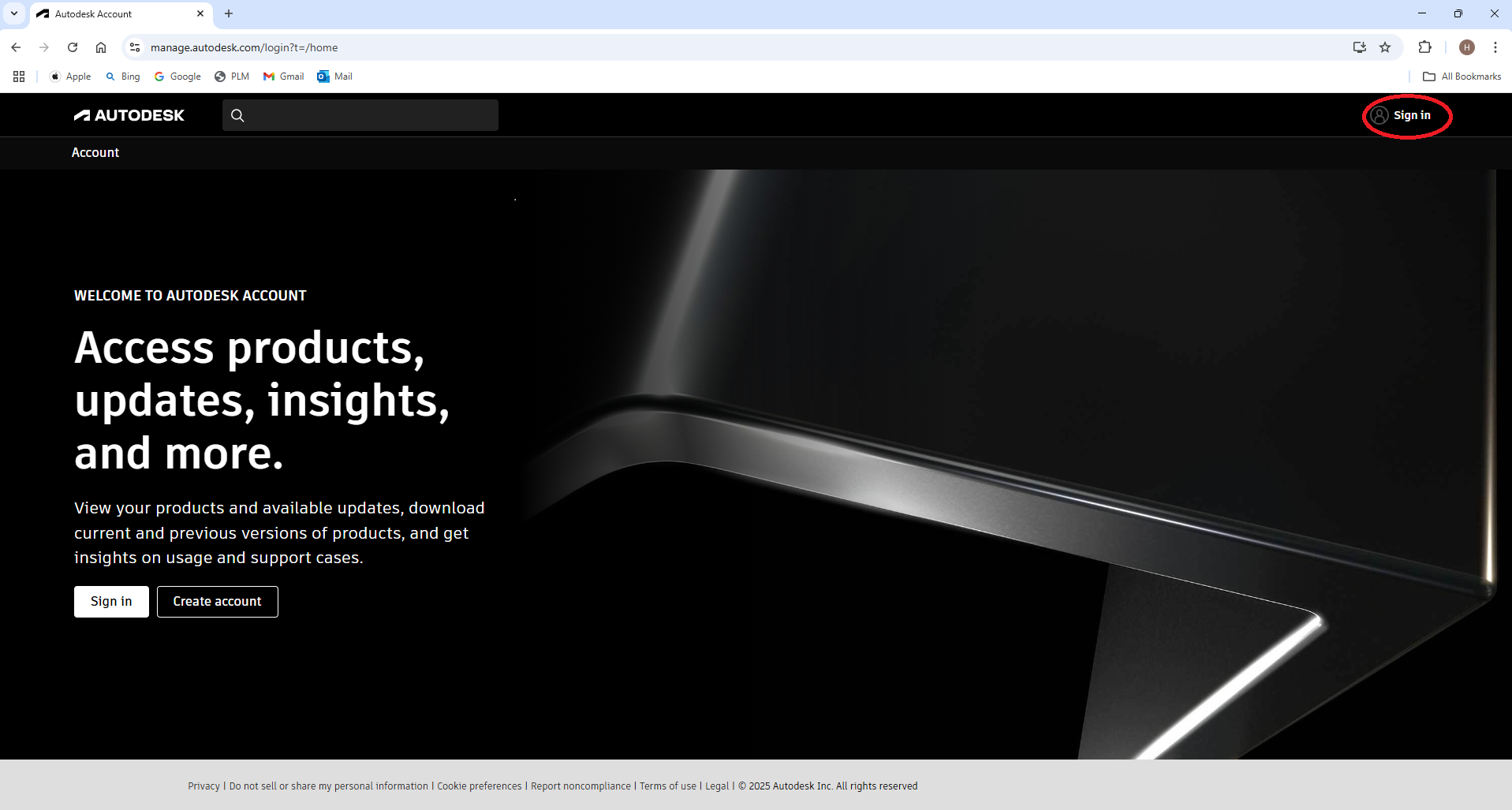 1. Logg inn på manage.autodesk.com, klikk "Sign in":