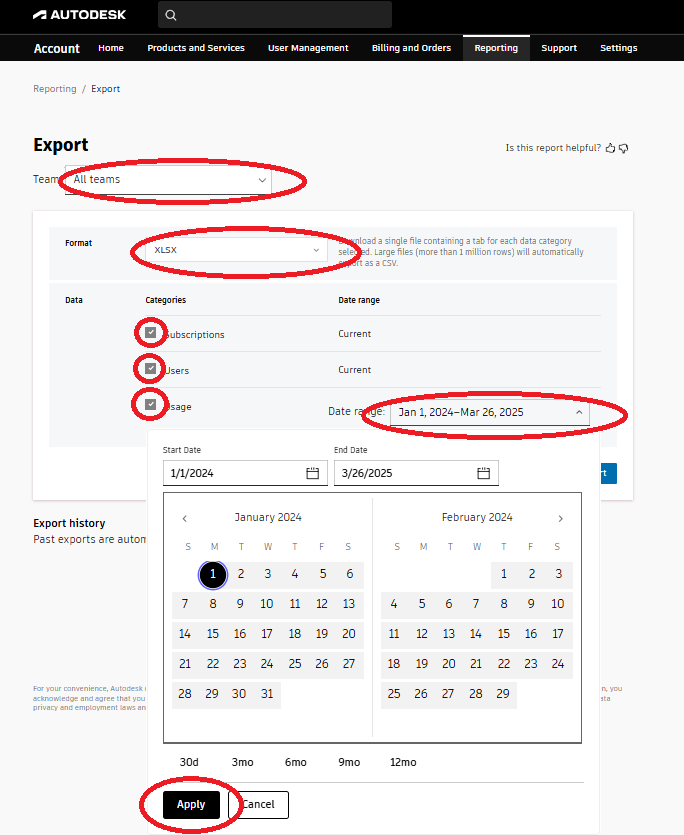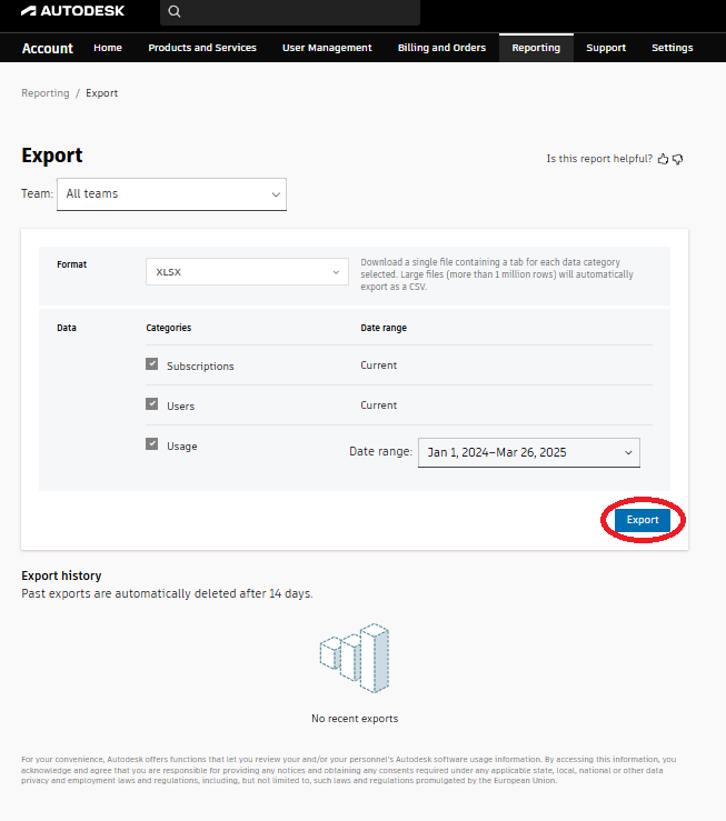 Nedenfor finner du en detaljert oppskrift på hvordan du laster ned lisens-, bruker- og bruksrapport fra din Autodesk Account.